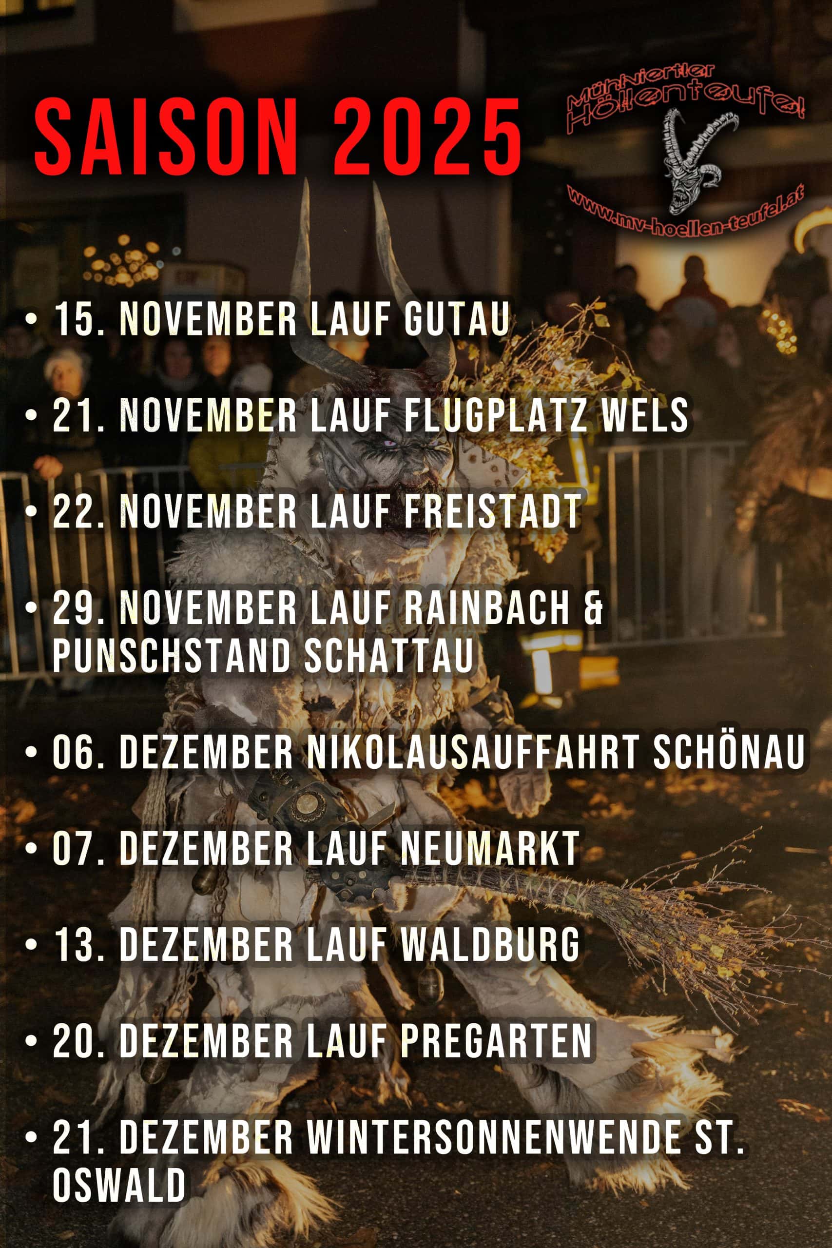 Unsere Saison verläuft von November bis Dezember. Wir sind in ganz Österreich, sowie bei unseren Nachbarn in Tschechien vertreten!